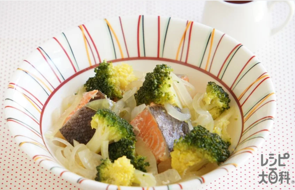 鮭とブロッコリーのレンチン蒸し